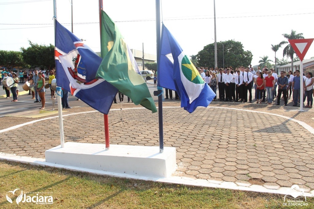 A Prefeitura de Jaciara, por intermédio da Secretaria Municipal de Educação, encerrou no dia 07 (segunda-Feira) a programação alusiva à Semana da Pátria que tinha sido iniciada no dia 1º deste mês. A cerimônia aconteceu na Praça das Bandeiras, na Avenida Coroados, nos períodos da manhã e da tarde com o hasteamento e descerramento das bandeiras.