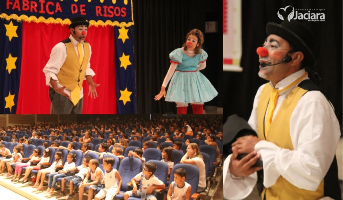 Em comemoração a semana que celebra as artes circenses, a Cia de Theatro em Cena trouxe à Jaciara a caravana de palhaços com o espetáculo “Fabrica de Risos”, assistido por 1.350 alunos da rede pública e particular de ensino, no Centro de Eventos Jovelina Maria de Almeida.