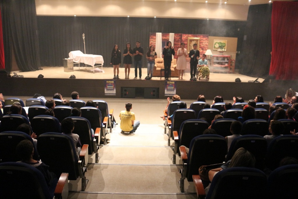 Com a casa lotada, os integrantes da Companhia Municipal de Artes de Jaciara “Armando Ferreira – Milhão” – encenaram na manhã desta quarta-feira (15) a peça teatral “Era Uma Vez O Amor da Minha Vida”, concorrendo na categoria Juvenil na 17ª edição do Fetran – Festival Temático Estudantil, que acontece até sexta-feira (17), no Centro de Eventos Jovelina Maria em Jaciara.