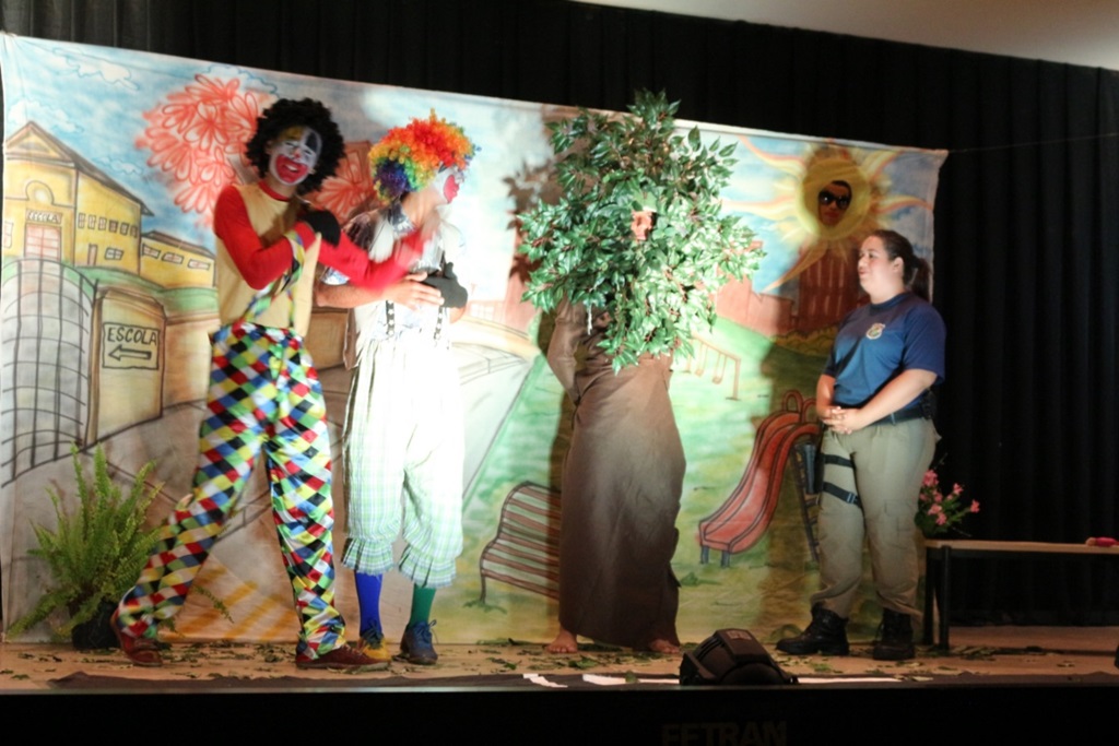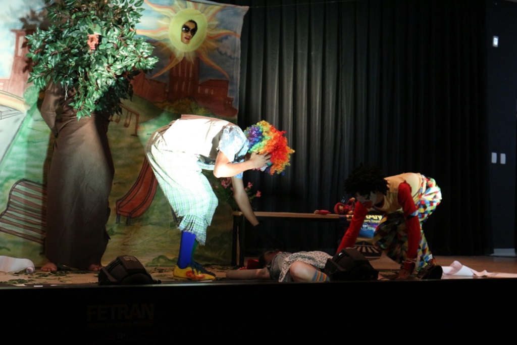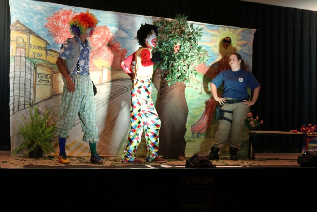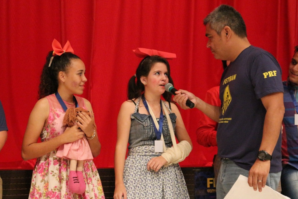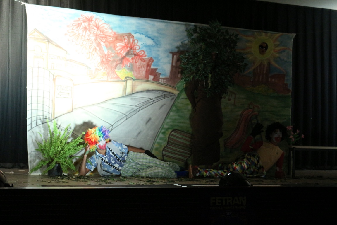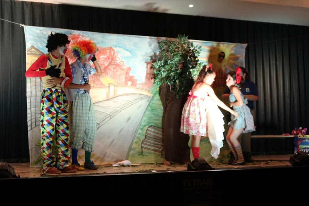 Ainda na manhã do Festival, a Escola Estadual Matheus Barbosa de Juscimeira foi a segunda a subir ao palco com a peça bem humorada e criativa “Com o Trânsito não se brinca” , protagonizada pelos palhaços Pirulito e Chocolate, os quais interagem com uma árvore e o sol, além das duas crianças envolvidas no enredo, sendo elas personagens importantes para o desenrolar da história.