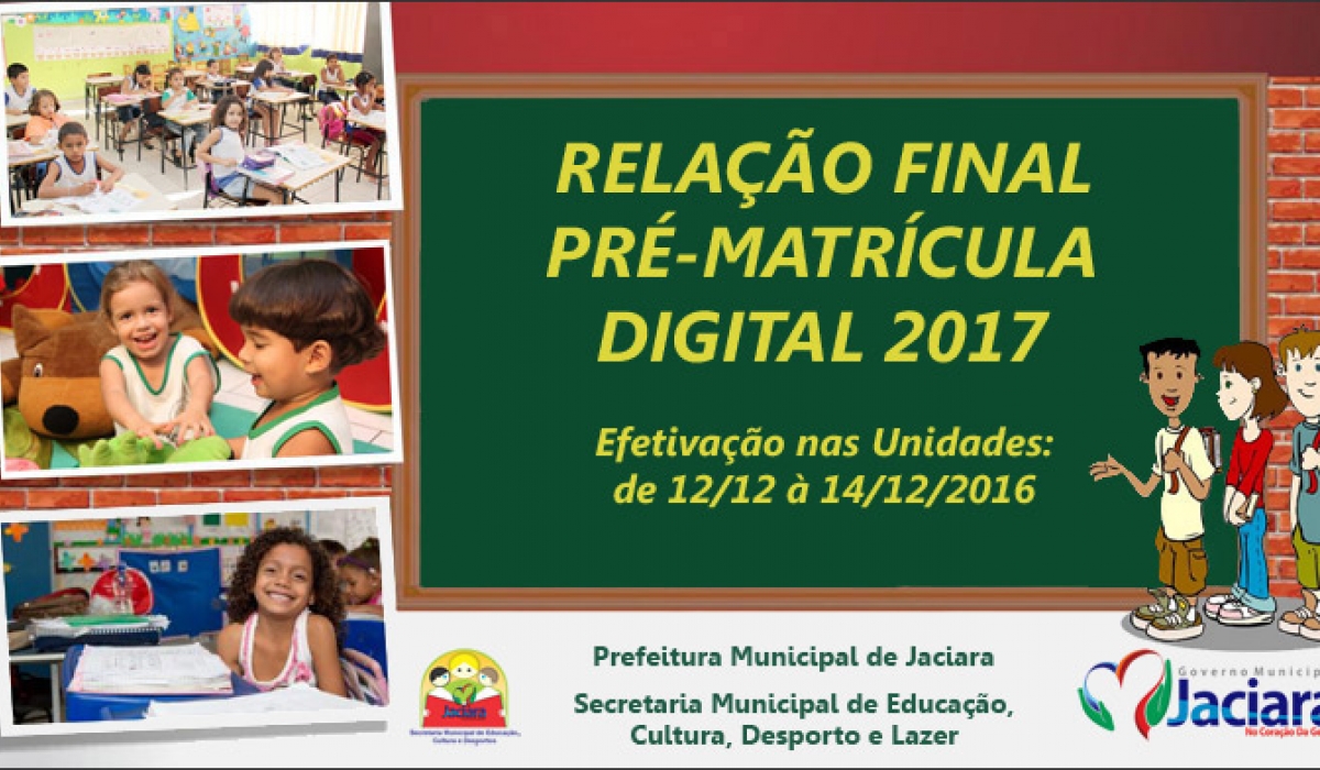 Secretaria de Educação divulga lista final da Pré-Matrícula 2017