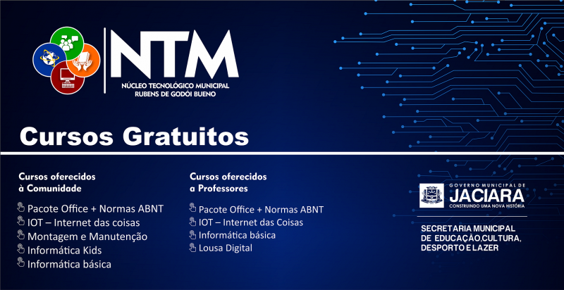 Núcleo Tecnológico Municipal oferece cursos gratuitos