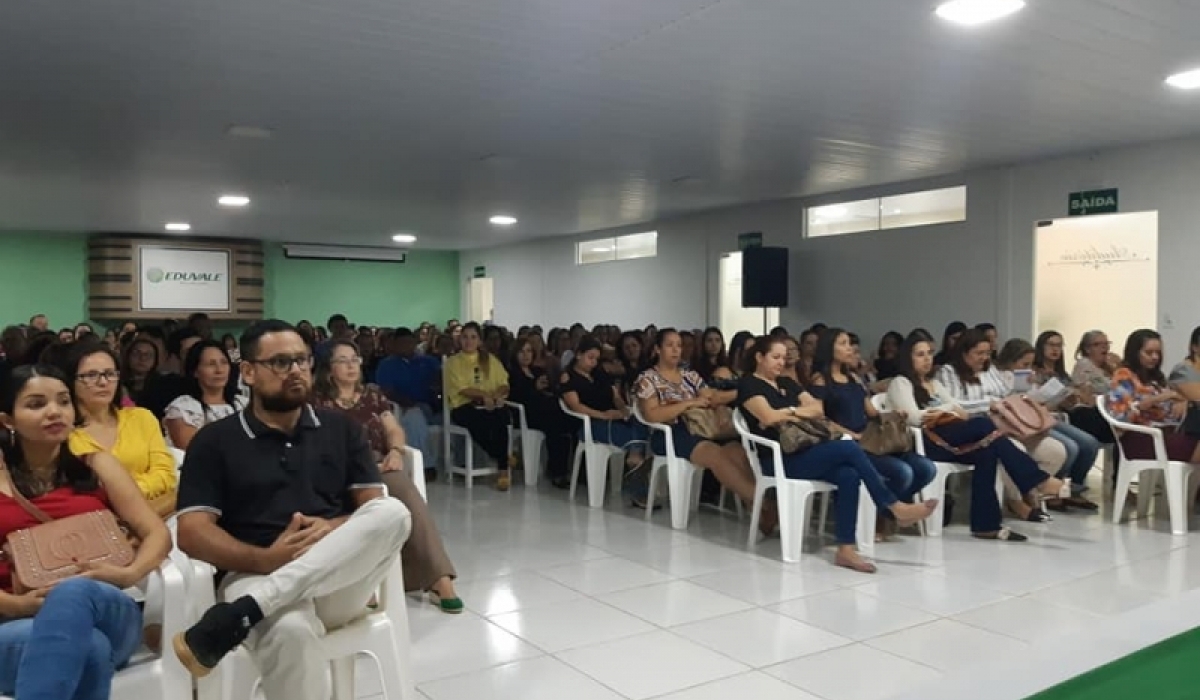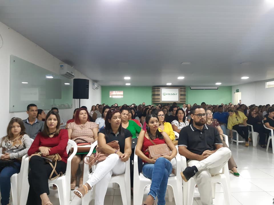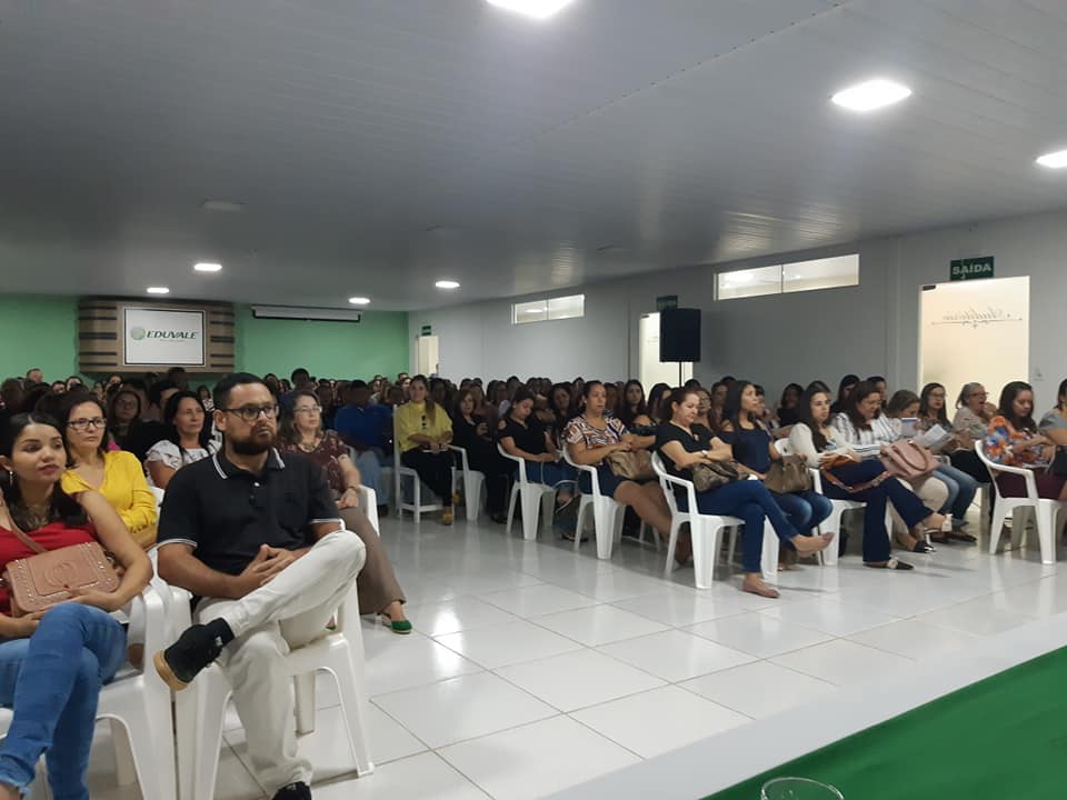 A formação está sendo realizada na Faculdade Eduvale e organizada pela secretária de Educação, Ana Paula Bueno, pela coordenadora de Educação Infantil, Rosilene Ferreira, coordenadora do Ens. Fundamental I, Valdineia Carvalho, coord. do Ens. Fundamental II, Leoneth e pelo coord. de Formação de Professores, Magno Rafael.