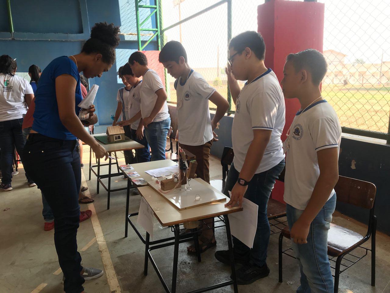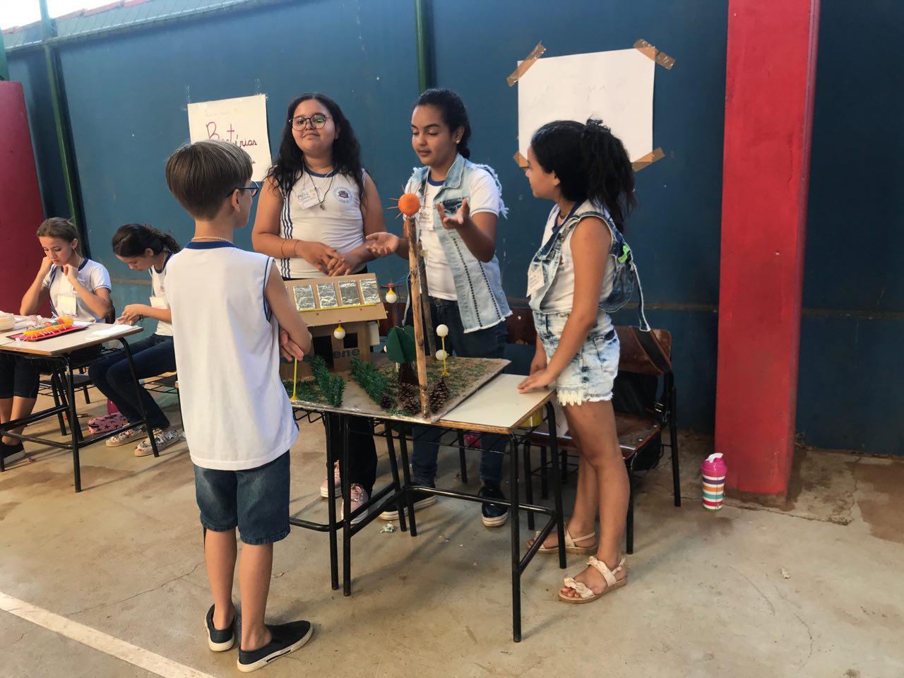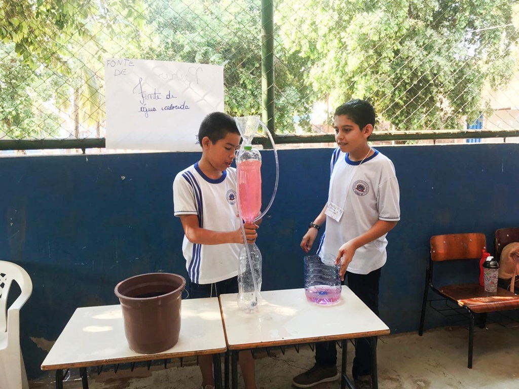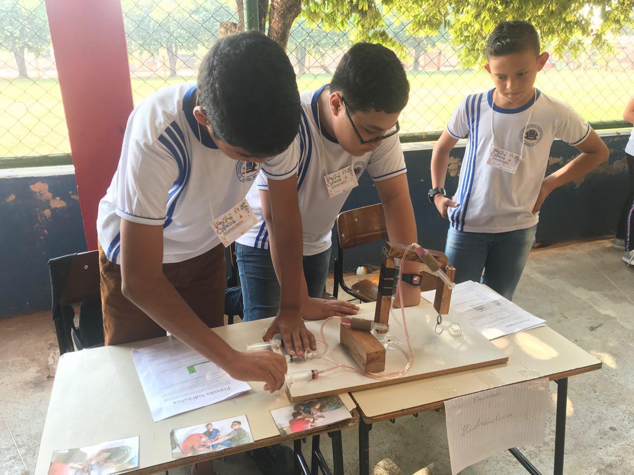 O aluno do 6º ano, Eduardo Henrique, de 12 anos, apresentou um trabalho com mais dois colegas sobre pressão hidráulica. "Fizemos um robô hidráulico que é transmitido por uma pressão que através de uma seringa da descarga a outra. As usinas de energia usam 65,2% gerada a energia por hidráulica, as usinas de água também usam hidráulica para limpar a água e gerar energia através da água", comentou.