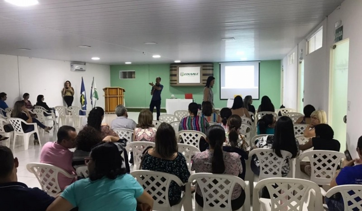 Durante o período matutino, o encontro aconteceu nas dependências da Faculdade Eduvale, com o tema “As Possibilidades da Tecnologia na Educação”, ministrado pelo professor Thalles Monteiro.