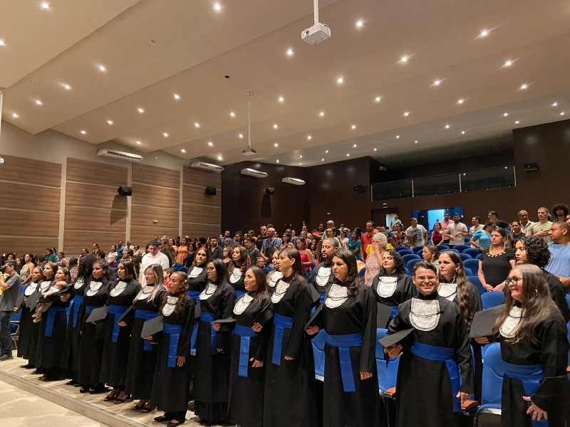 Foi realizado na noite desta quarta-feira (05.09), no Centro de Eventos Jovelina Maria de Almeida, a formaturada primeira turma do curso Técnico em Ludoteca, voltada aos servidores da Secretaria Municipal de Educação que atuam no cargo de Auxiliar de Desenvolvimento Infantil, (ADI), que teve início em 2021, quando houve a parceria com o Instituto Federal de Educação de Mato Grosso (IFMT). No total, são 34 servidores formados.