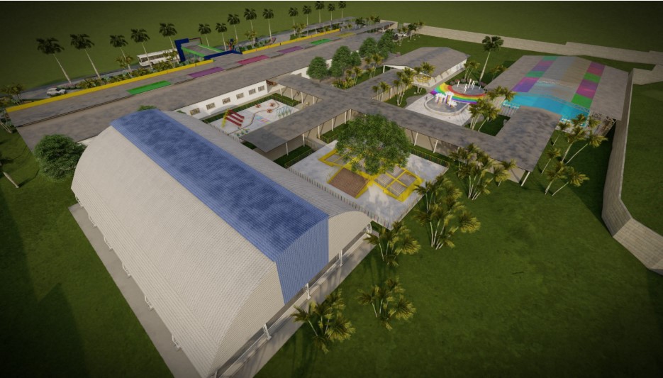 A nova escola considerada modelo municipal conta com um terreno de 17.464,01 m². Destes, 6.752,77 m² serão de área construída para comportar um bloco educacional com 16 (dezesseis) salas de aula, refeitório, playground, piscina, estacionamento, fonte seca e molhada, além de uma quadra poliesportiva coberta com vestiário.