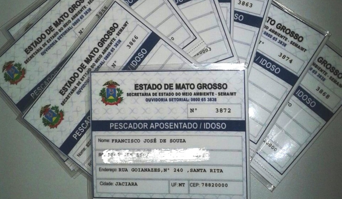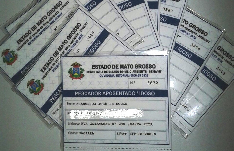 As carteirinhas são da categoria Pescador Aposetado/Idoso, emitida pela Secretaria de Estado do Meio Ambiente (Sema-MT). Os beneficiados são: Milton Bueno Pereira, Geralda Martins Furtado, Edemir Pedro da Silva, Joaquim Gonçalves da Cruz Neto, João Carlos Vasques Mota, João Hermenegildo Gomes, Luiz Francisco Pedro, Francisco José de Souza, Domingos Santos e Arlindo Athanazio.