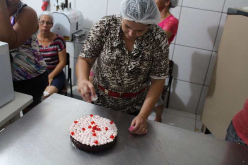 Já a parte específica do Curso de Confeiteiro tem as aulas práticas realizadas na padaria da Cozinha Única onde o pessoal todas as noites colocam a mão na massa para aprender, outros aprimorar, uma variedade de massas, tortas, docinhos, caldas, bombons, enfeites, pasta americana, cupcakes, dentre outros.