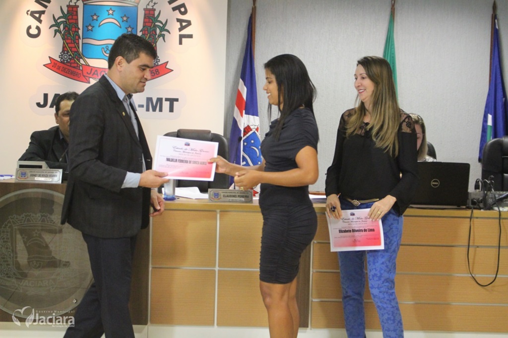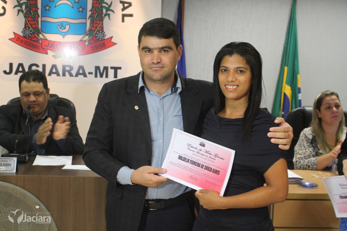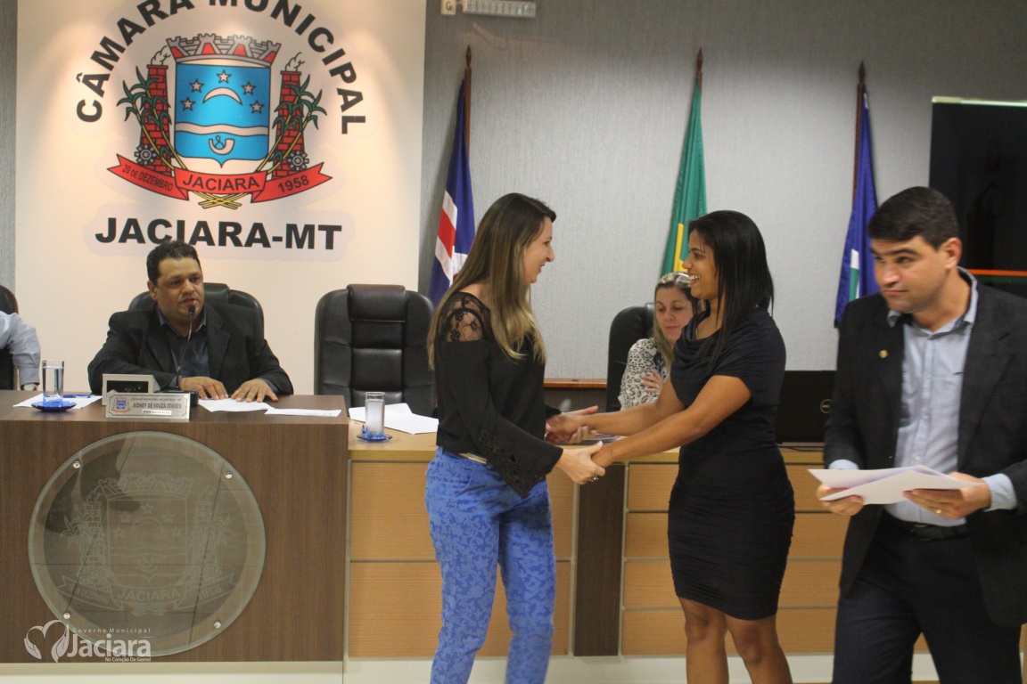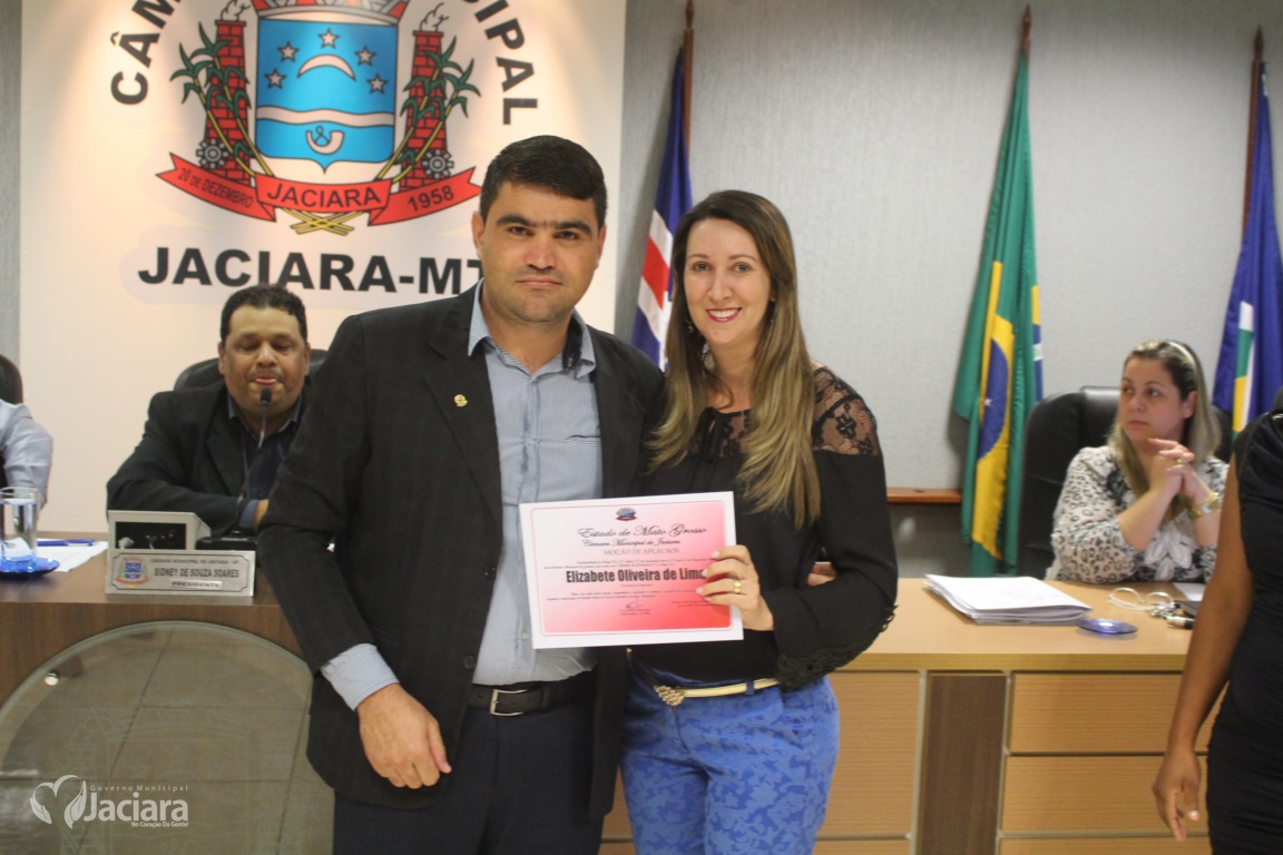 A Câmara Municipal de Jaciara entregou na noite desta terça-feira (13) durante sessão ordinária Moção de Aplausos a duas mulheres pela dedicação a comunidade jaciarense. A primeira dama Elizabete Oliveira de Lima pelo trabalho realizado quando ainda estava no comando da Secretaria Municipal de Educação. E a chefe do Ciretran Jaciara, Ivaldelir Ferreira de Souza Alves, pelo seu profissionalismo e bons trabalhos realizado naquela repartição.