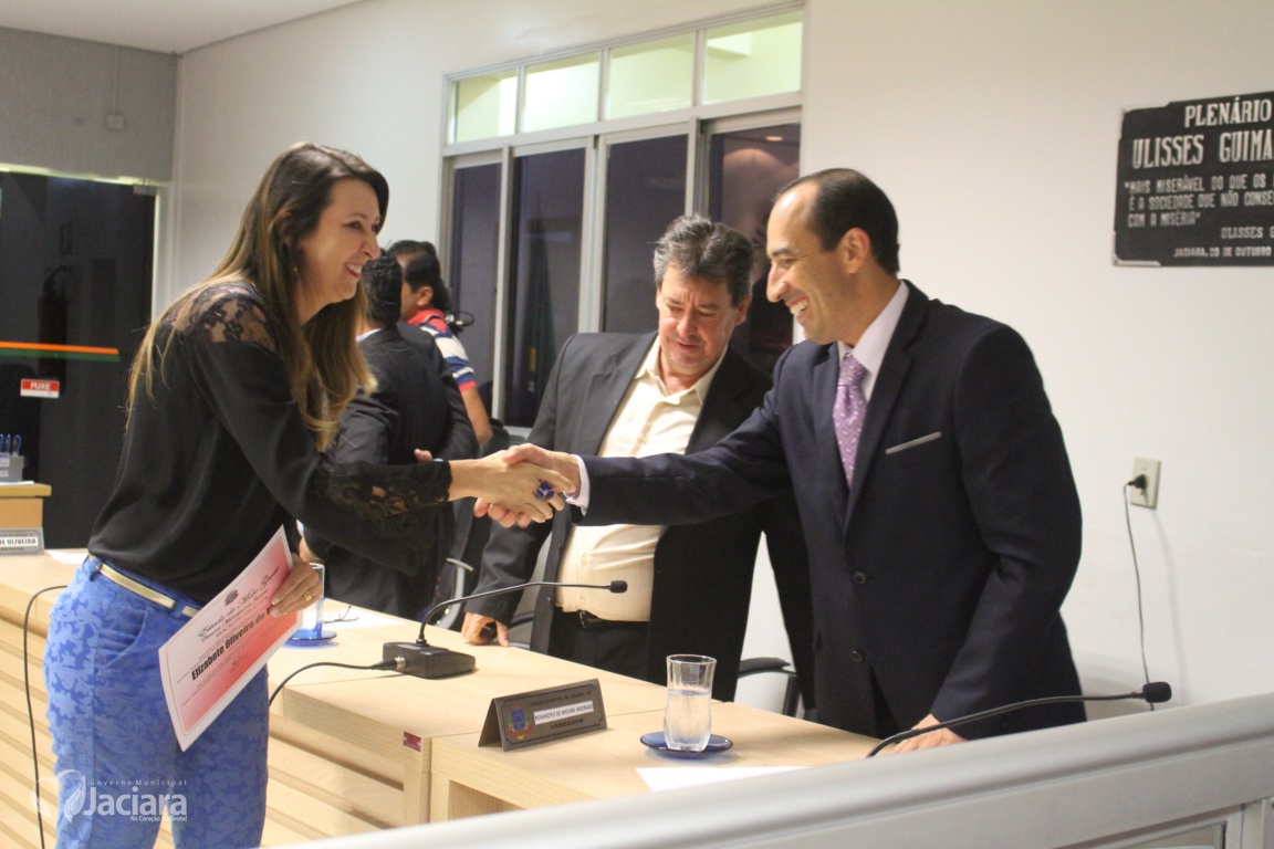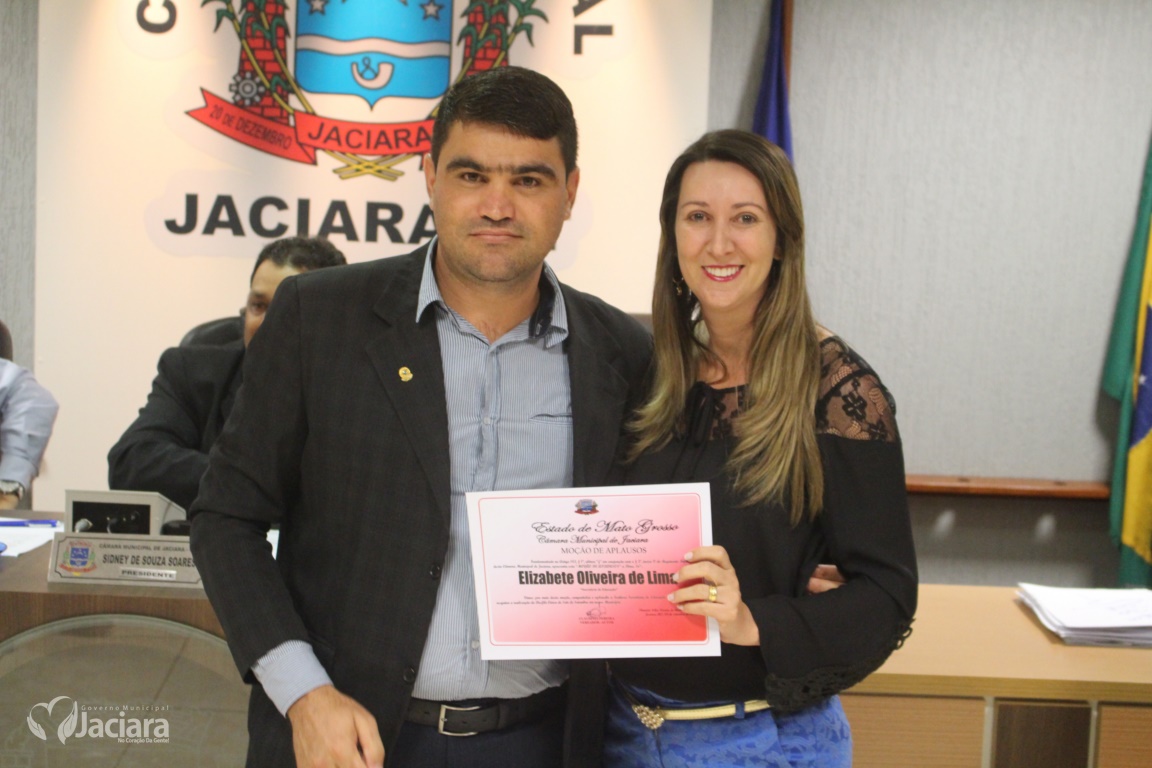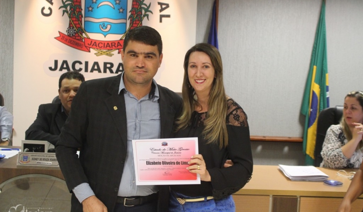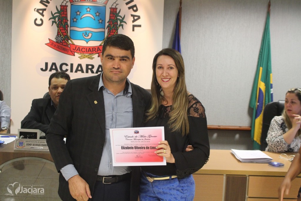 A Câmara Municipal de Jaciara entregou na noite desta terça-feira (13) durante sessão ordinária Moção de Aplausos a duas mulheres pela dedicação a comunidade jaciarense. A primeira dama Elizabete Oliveira de Lima pelo trabalho realizado quando ainda estava no comando da Secretaria Municipal de Educação. E a chefe do Ciretran Jaciara, Ivaldelir Ferreira de Souza Alves, pelo seu profissionalismo e bons trabalhos realizado naquela repartição.