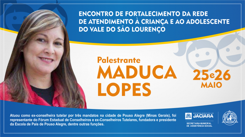 A capacitação será ministrada pela professora de educação infantil e alfabetização Maduca Lopes, que tem ampla experiência na área. Atuou como ex-conselheira tutelar por três mandatos na cidade de Pouso Alegre (Minas Gerais), foi representante do Fórum Estadual de Conselheiros e ex-Conselheiros Tutelares, fundadora e presidente da Escola de Pais de Pouso Alegre, dentre outras funções.