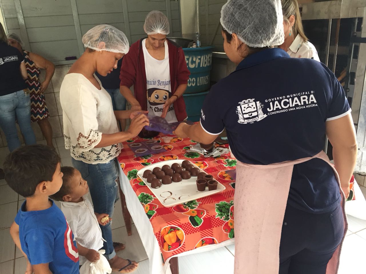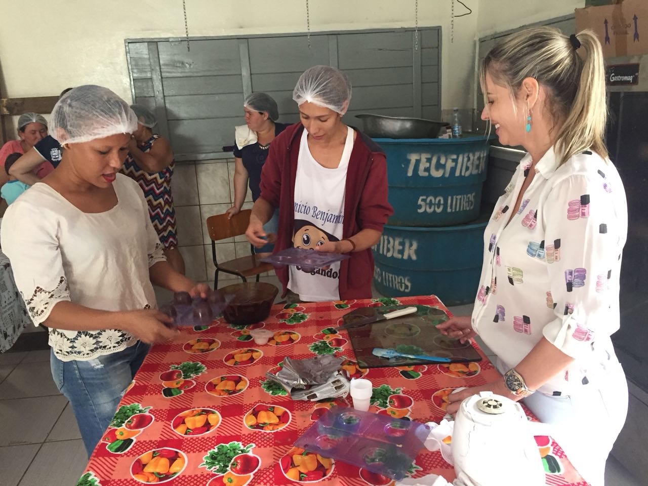 Além disso, também foi ministrado pela coordenadora de cozinha, Lorrainy Leonel, um curso de confecção de trufas e ovos de chocolate para as moradoras da região.