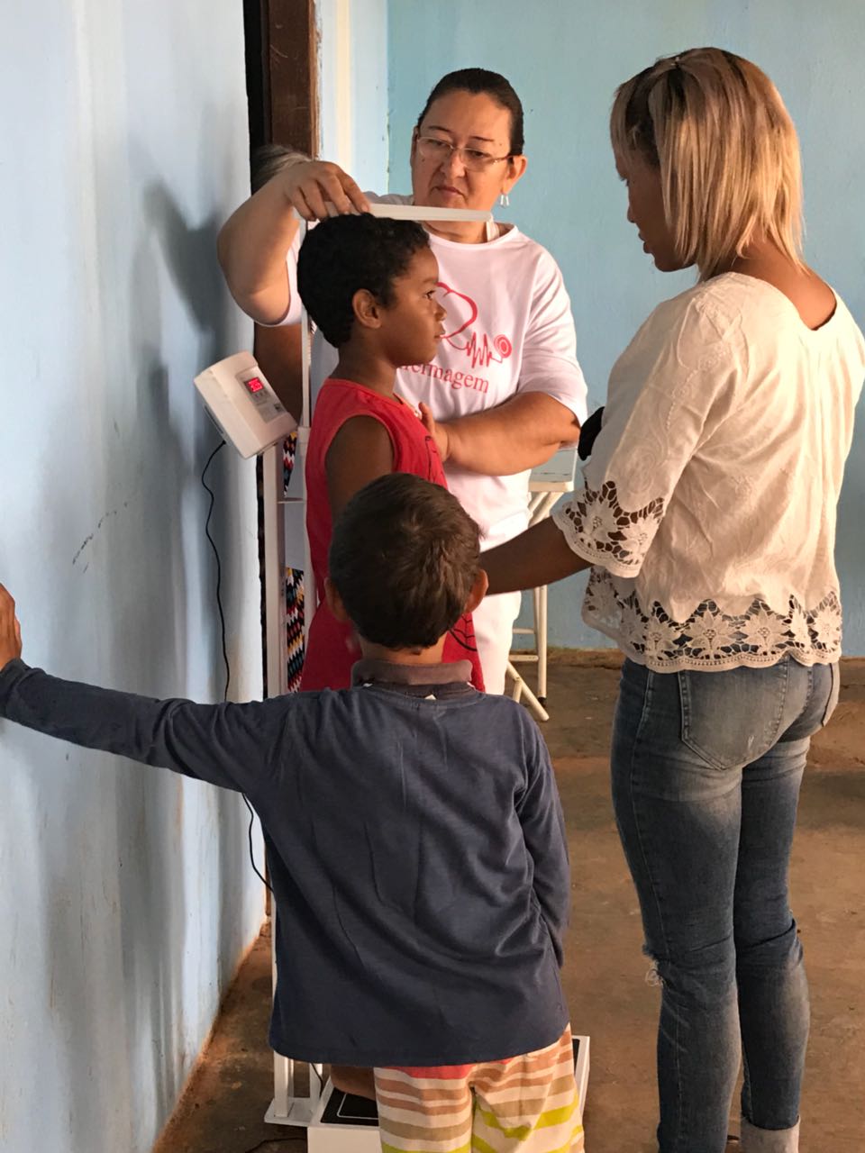 A Secretaria de Saúde foi parceira nesta ação realizando a pesagem de crianças que fazem parte do PBF, já que, essa é uma das condicionalidades para que os beneficiários continuem recebendo o auxílio.