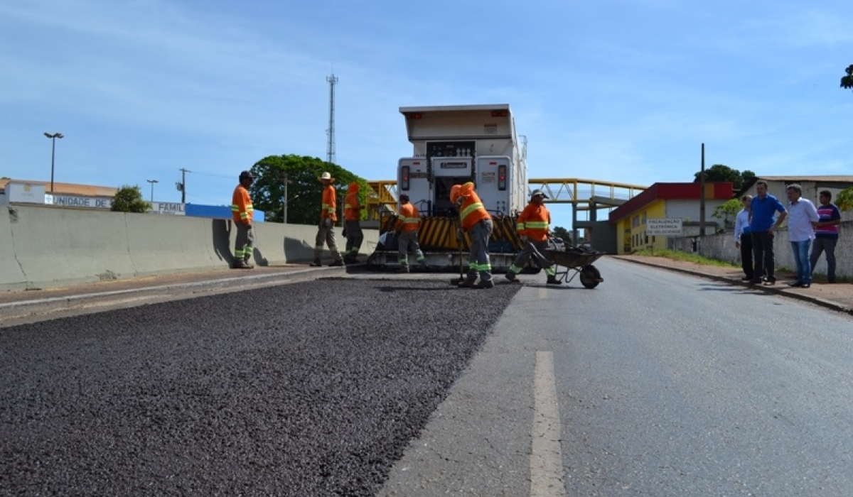 As obras na pista de rolagem da BR 364 começam a transformar o cartão postal do município de Jaciara. Na manhã desta quinta-feira (02), o prefeito Ademir Gaspar e o vereador Clóves Pereira acompanharam a aplicação do revestimento, que contemplará todo o trecho da rodovia que corta o município, antes deste serviço foi feito o serviço de tapa buracos.