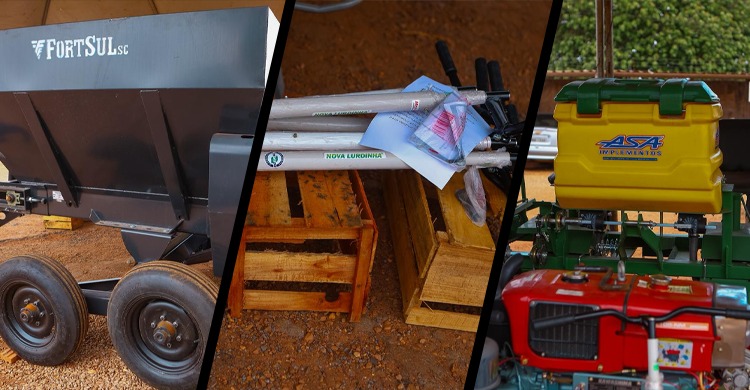 Foram entregues plantadeira e adubadeira, plantadeira de mandioca, perfurador de solo, desperfilhador por rotocompressão, subsolador, além de dois microtratores a diesel, totalizando um investimento superior a R$ 190 mil.