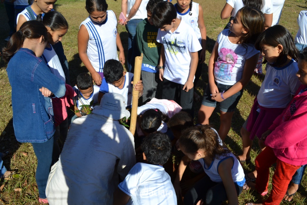 Além de um bate papo sobre educação ambiental, os alunos do quarto e quinto ano, das professoras Adelaine e Danielle, meteram a mão na terra e colocaram em prática o aprendizado na disciplina de Ciências Naturais, com o plantio de nove mudas de árvores de Ipês espécies branco, cor-de-rosa e roxo.