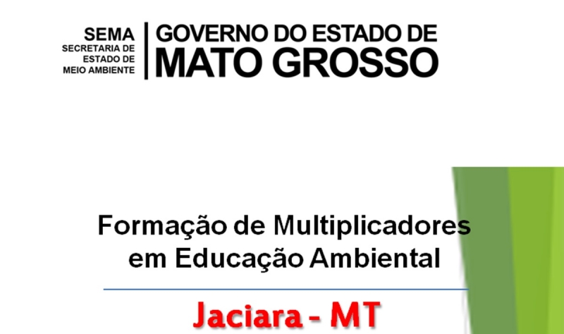 A Secretaria de Estado de Meio Ambiente (SEMA-MT), por meio da Superintendência de Educação Ambiental (SUEA) e a Prefeitura Municipal de Jaciara convidam a população de Jaciara e região para participar da Formação de Multiplicadores em Educação Ambiental.
