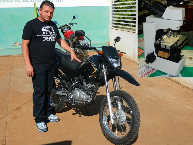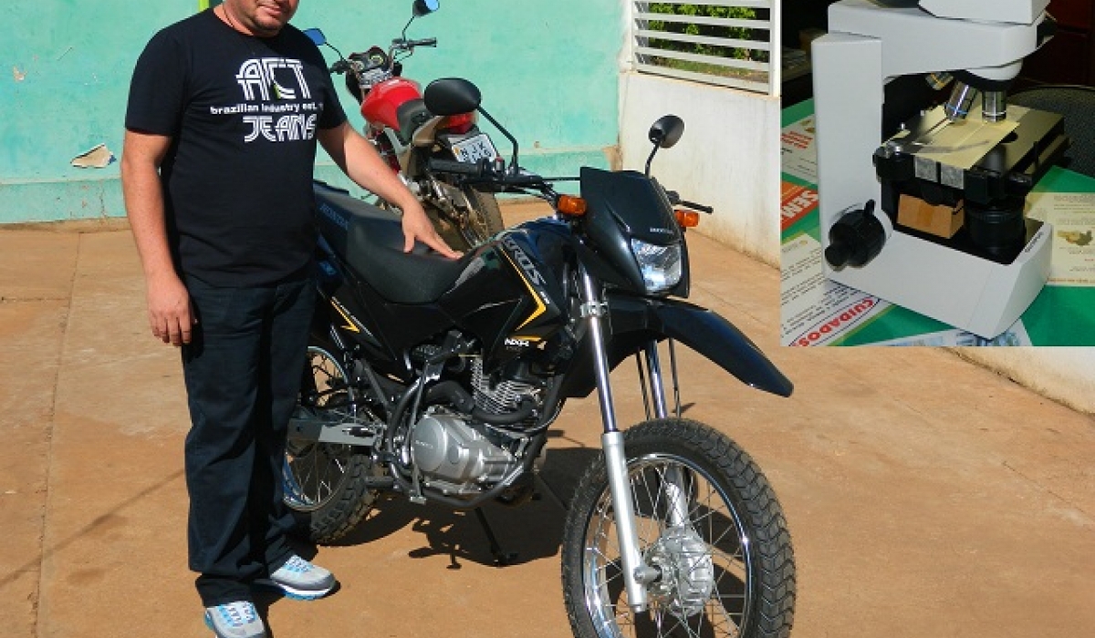 A Secretaria Municipal de Saúde recebeu na semana passada uma moto 0 km e um microscópio. O benefício faz parte de um convênio entre o município e uma empresa transmissora de energia, que atualmente presta serviços na região.