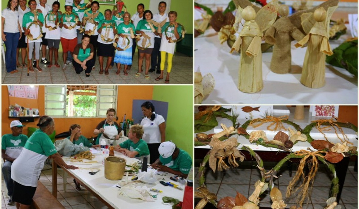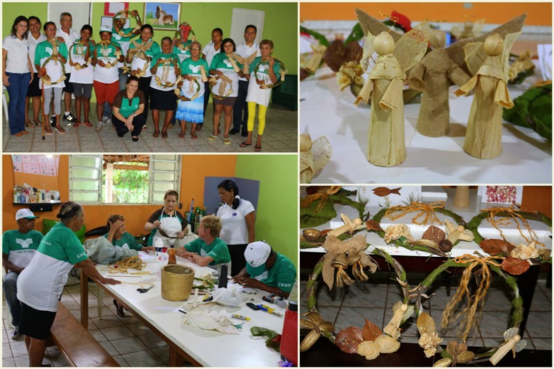 O tema do curso dos arranjos florais foi decoração natalina, onde os alunos puderam criar suas próprias guirlandas de natal, utilizando folhas esqueletizadas sem a clorofila, palhas secas de milho e de coqueiros, dentre outros materiais que também já foram descartados pela natureza.
