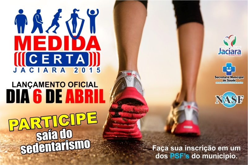 Está cansado do sedentarismo? Então, movimenta-se com o Projeto Medida Certa Jaciara 2015. As inscrições já estão abertas e podem ser feitas em qualquer uma das oito unidades do município do Programa Saúde da Família (PSF´s).