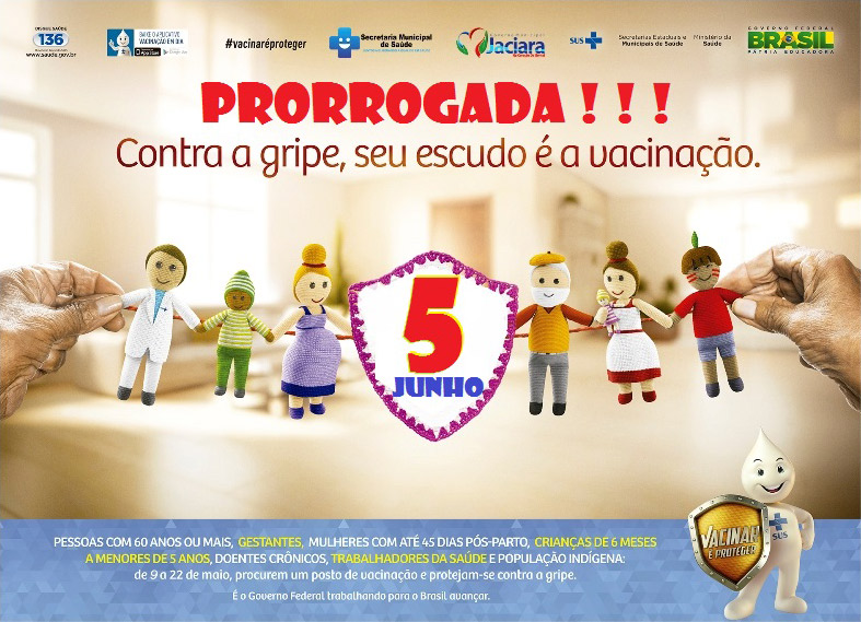 A Campanha de vacinação contra gripe foi prorrogada até o dia 5 de junho em todas as unidades do Programa Saúde da Família (PSF´s) de Jaciara e nas demais cidades de mato Grosso. Segundo o Ministério da Saúde, formam disponibilizadas 614 mil doses de vacina para o grupo prioritário mato-grossense com a meta de imunizar 550 mil.