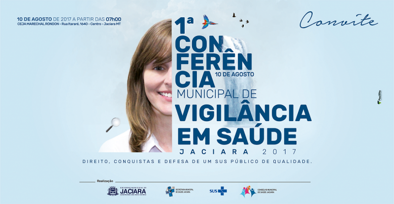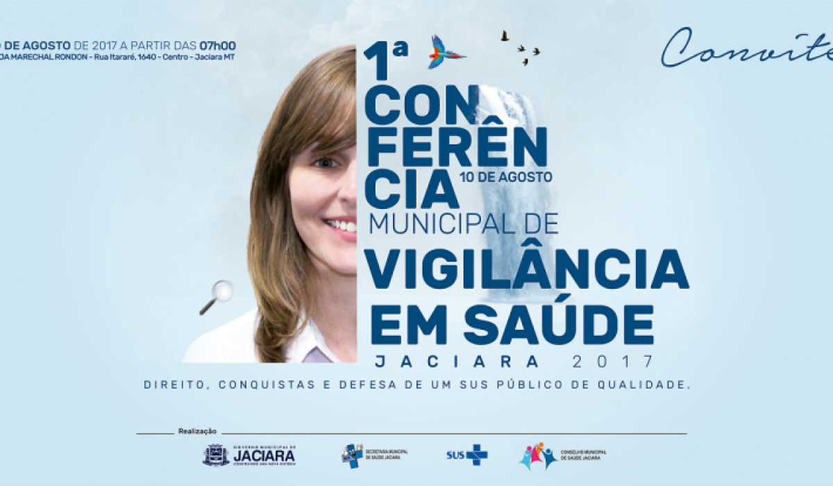 A Prefeitura de Jaciara convida toda população para participar da 1ª Conferência Municipal de Vigilância em Saúde, realizada no dia 10 de agosto, quinta-feira, a partir das 7h, no CEJA (Centro de Educação de Jovens e Adultos) Marechal Rondon.