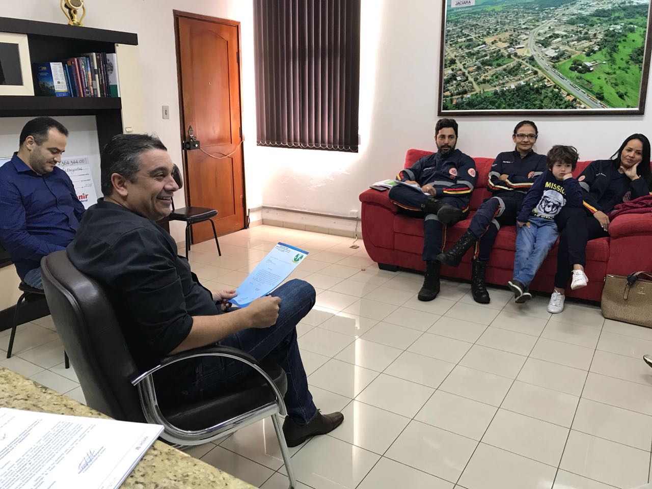 Nesta segunda-feira, 21 de maio, o prefeito Abdo Mohammad recebeu em seu gabinete a equipe do Serviço Móvel de Urgência e Emergência (Samu) de Jaciara. O objetivo da reunião foi alinhar ideias e posicionamentos entre a administração municipal e o serviço de saúde.