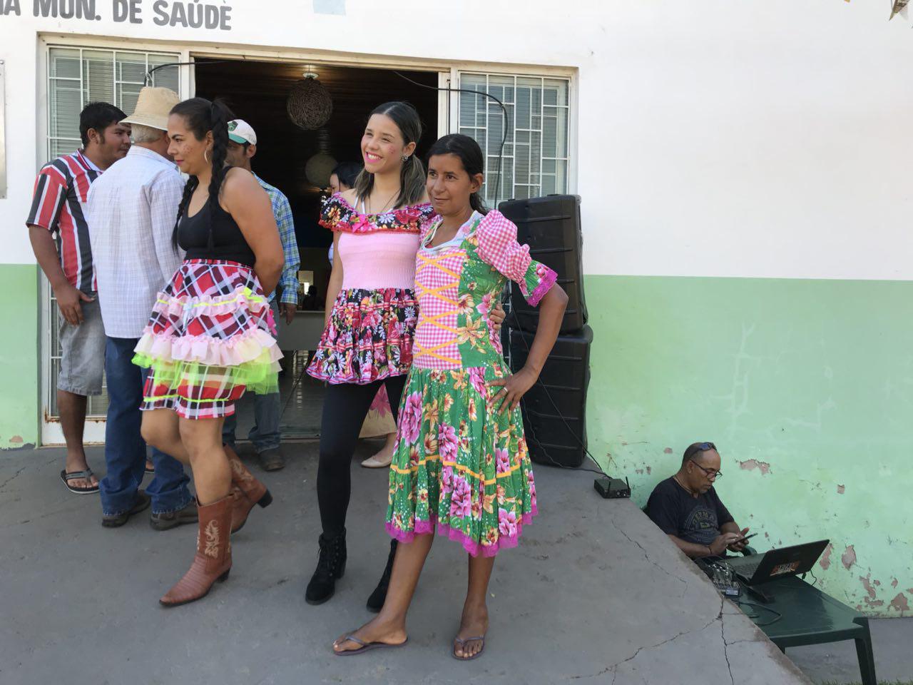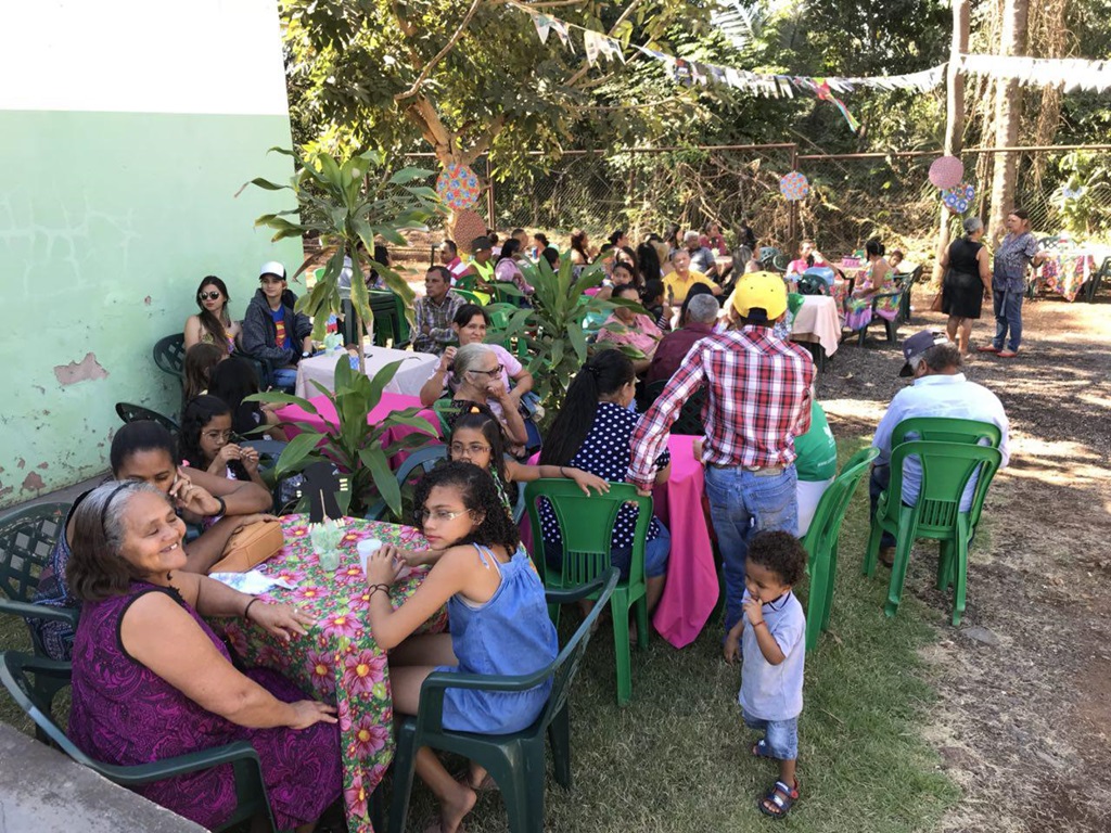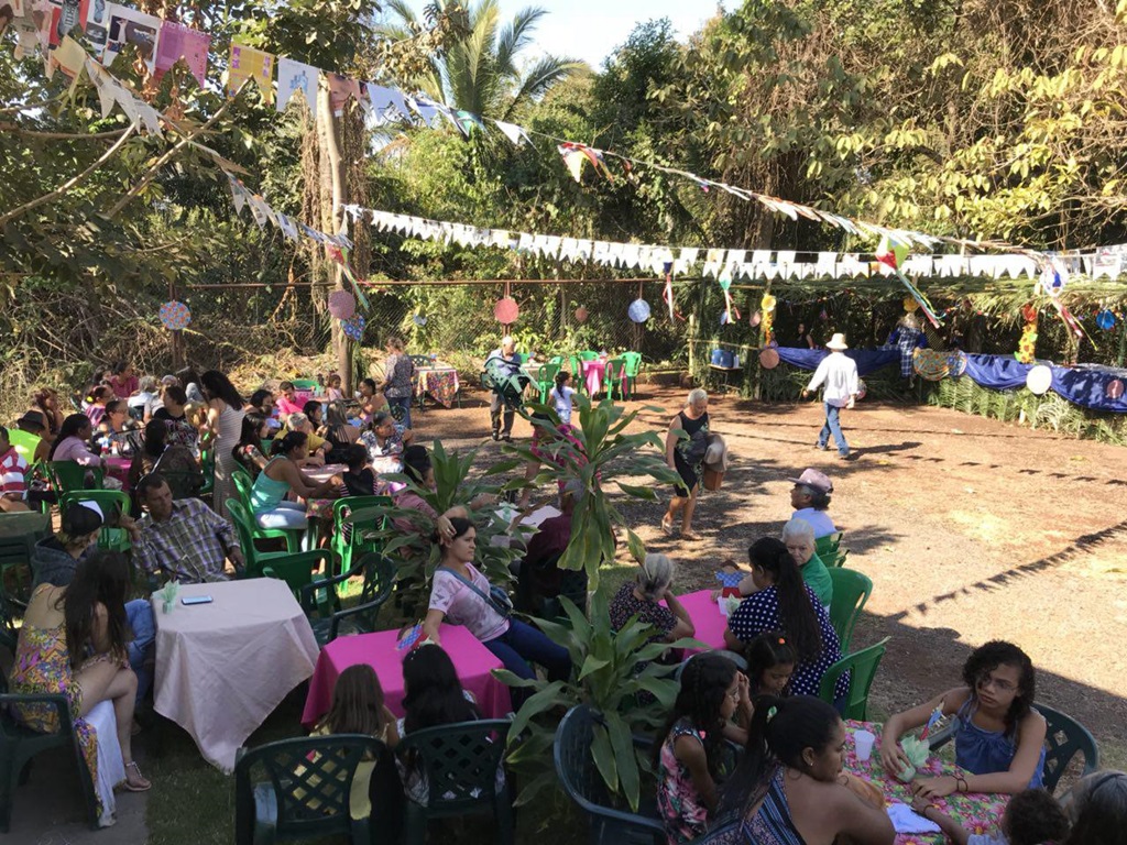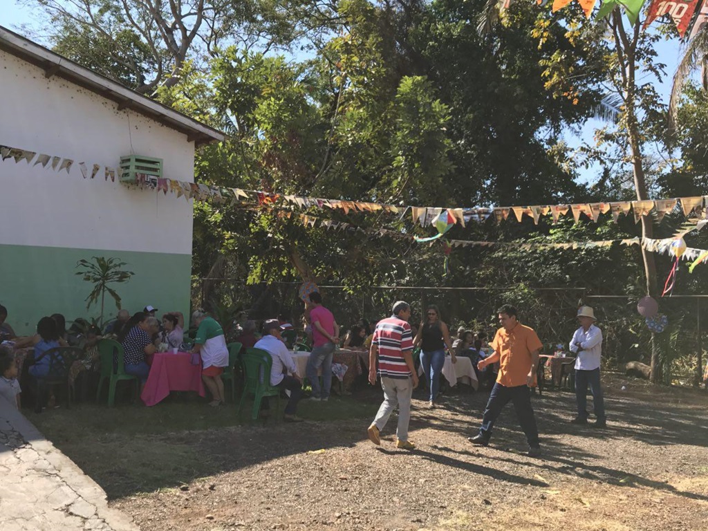 A festa começou com uma linda apresentação de quadrilha junina, com cerca 20 pessoas. Autoridades do município, família e amigos celebravam o momento com palmas e alegria. Havia barraca com pescaria e muitas comidas típicas.