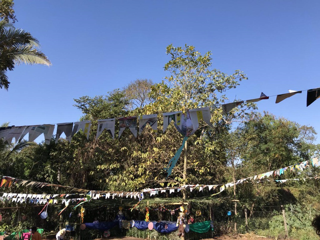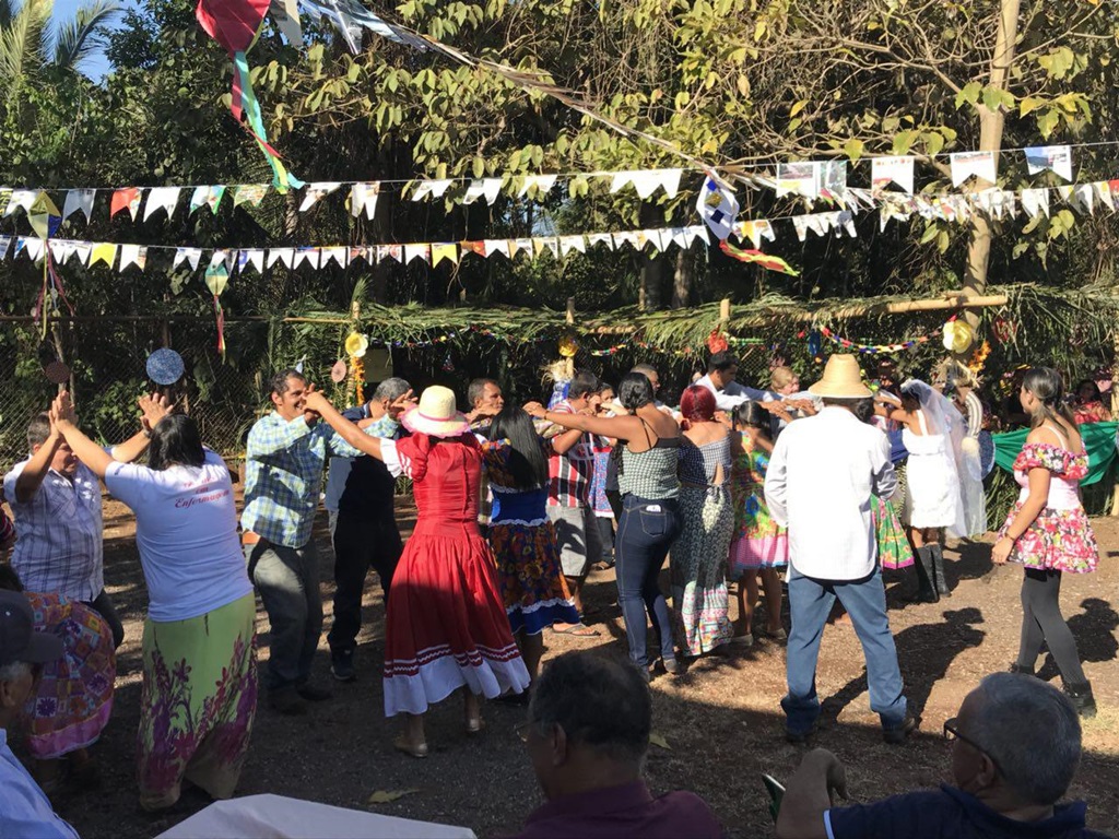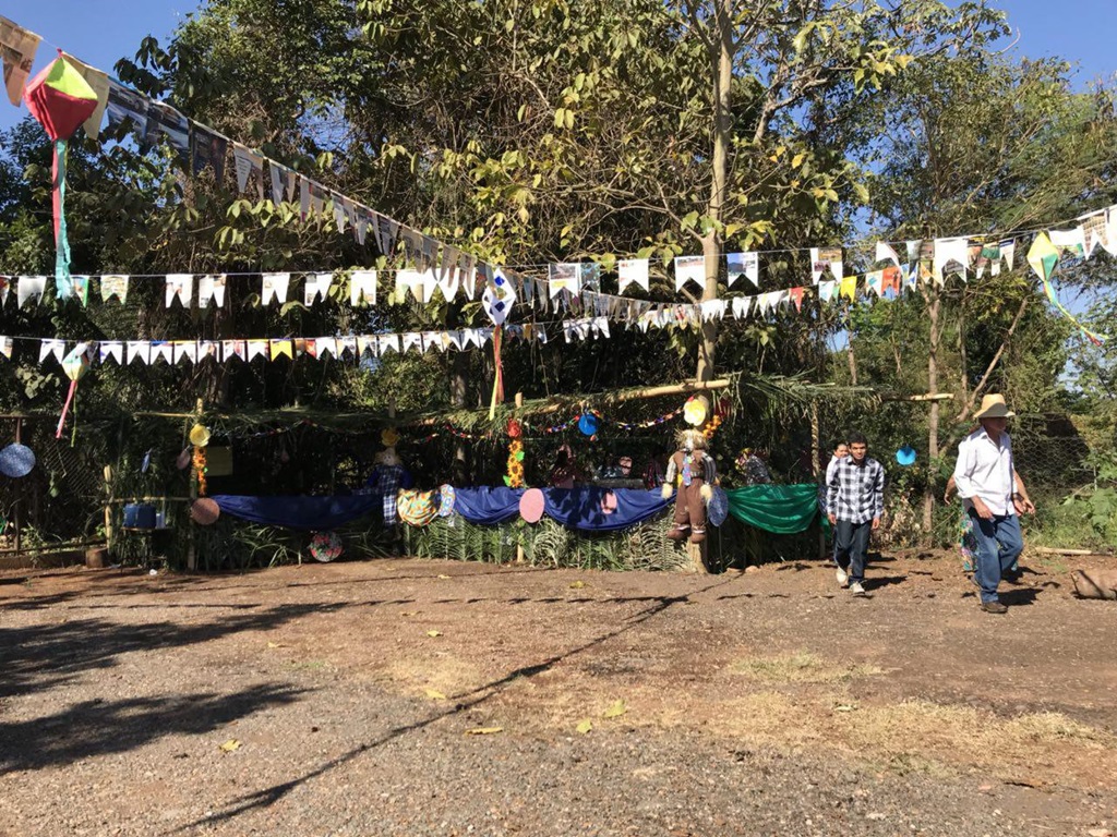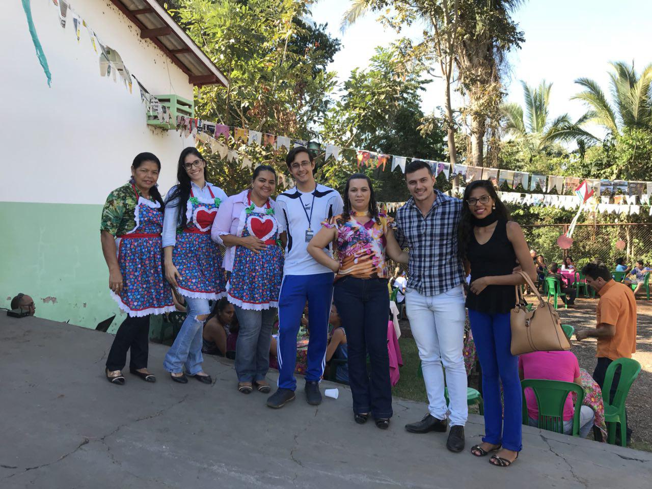 A festa começou com uma linda apresentação de quadrilha junina, com cerca 20 pessoas. Autoridades do município, família e amigos celebravam o momento com palmas e alegria. Havia barraca com pescaria e muitas comidas típicas.