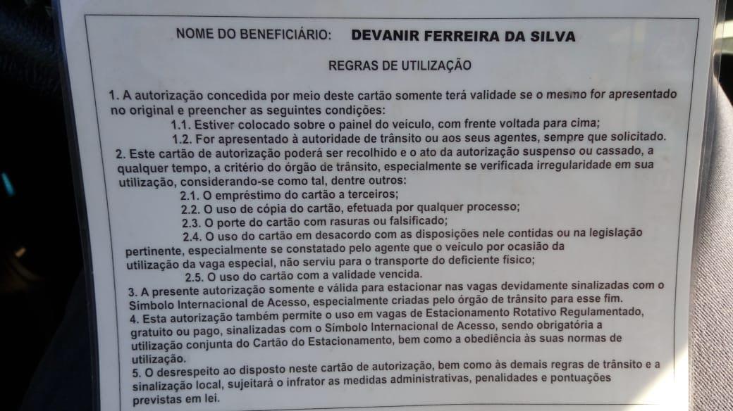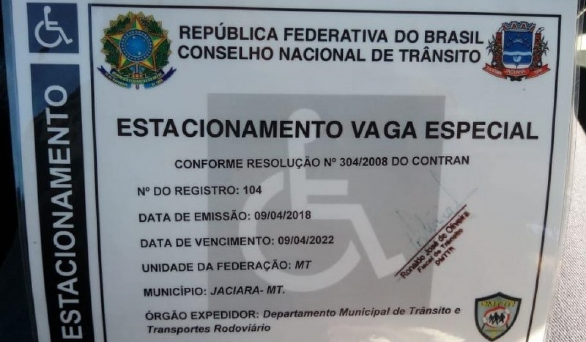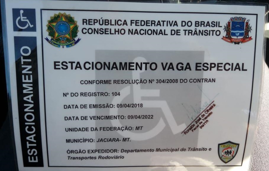 O Governo Municipal de Jaciara informa que a caminhonete que pertence à Secretaria de Saúde está sendo utilizada a trabalho pelo servidor público Devanir Ferreira da Silva, o mesmo é portador de necessidades especiais, por este motivo faz o uso de vagas preferenciais em conformidade com a resolução nº 304/2008 do Conselho Nacional de Trânsito (CONTRAN).