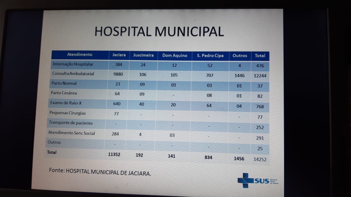 A Secretaria Municipal de Saúde de Jaciara apresentou resultado dos trabalhos realizados no quadrimestre de maio a agosto deste ano, no qual foram feitos mais de 65 mil atendimentos, em todos os setores da pasta. A apresentação dos números positivos aconteceu durante a Audiência Pública, no último dia 26, na Câmara Municipal.