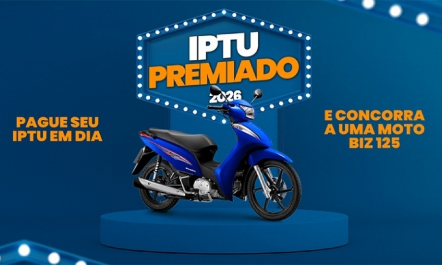IPTU Premiado 2026 vai sortear uma moto Biz 125 em Jaciara