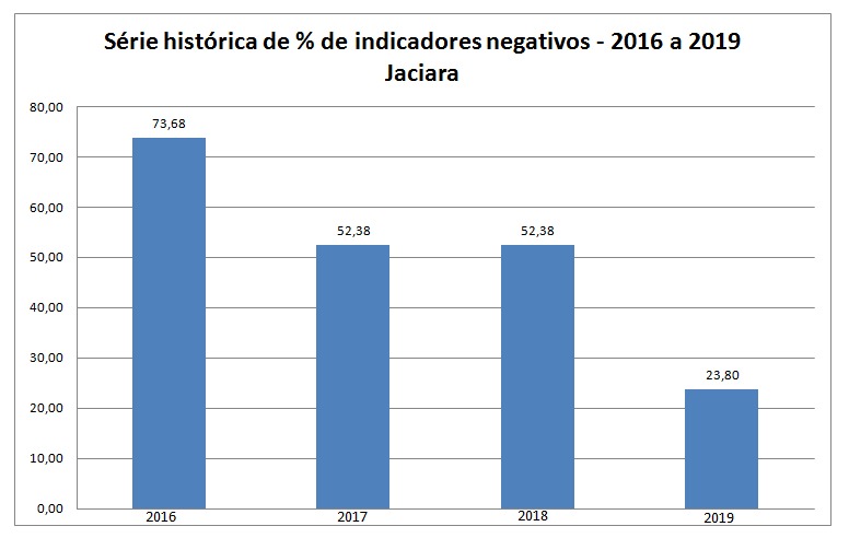 A Secretaria Municipal de Saúde de Jaciara alcançou resultados históricos no índice do cumprimento de metas pactuadas com Ministério da Saúde. Na atual gestão, os indicadores negativos foram reduzidos significativamente, de 73,68% em 2016 para 23,8% em 2019, segundo dados divulgados pelo SISPACTO.