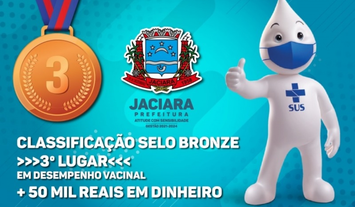 Jaciara é um dos municípios brasileiros que se destacou na imunização de principais vacinas do calendário básico, tanto que foi contemplado pelo Programa Imuniza Mais MT, iniciativa criada em 2021 pelo Governo de Mato Grosso, que já premiou na vacinação da primeira etapa no ano anterior (ver aqui). Agora, segunda fase, ganhou o selo bronze, garantindo a premiação no valor de R$ 50 mil.