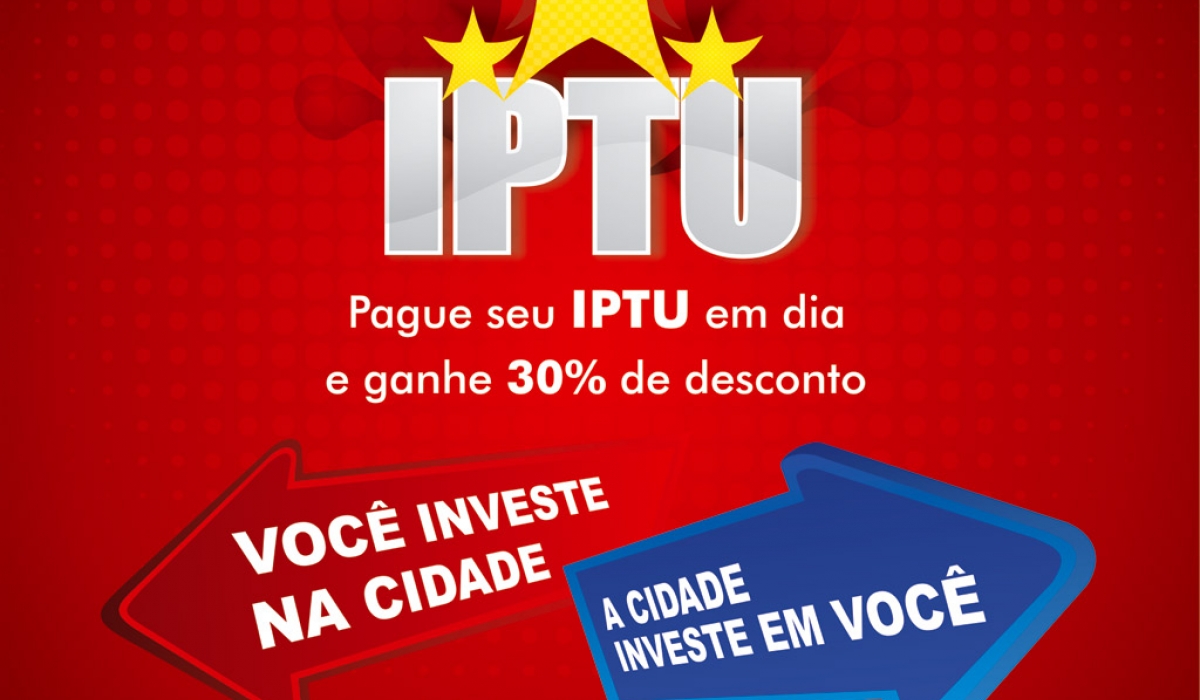 O IPTU (Imposto Predial e Territorial Urbano) é uma grande ferramenta para que a cidade em que vivemos possa crescer e se desenvolver. Pensando nisso, a Prefeitura de Jaciara, comunica que o pagamento do seu IPTU 2012 a vista tem 30% de desconto.