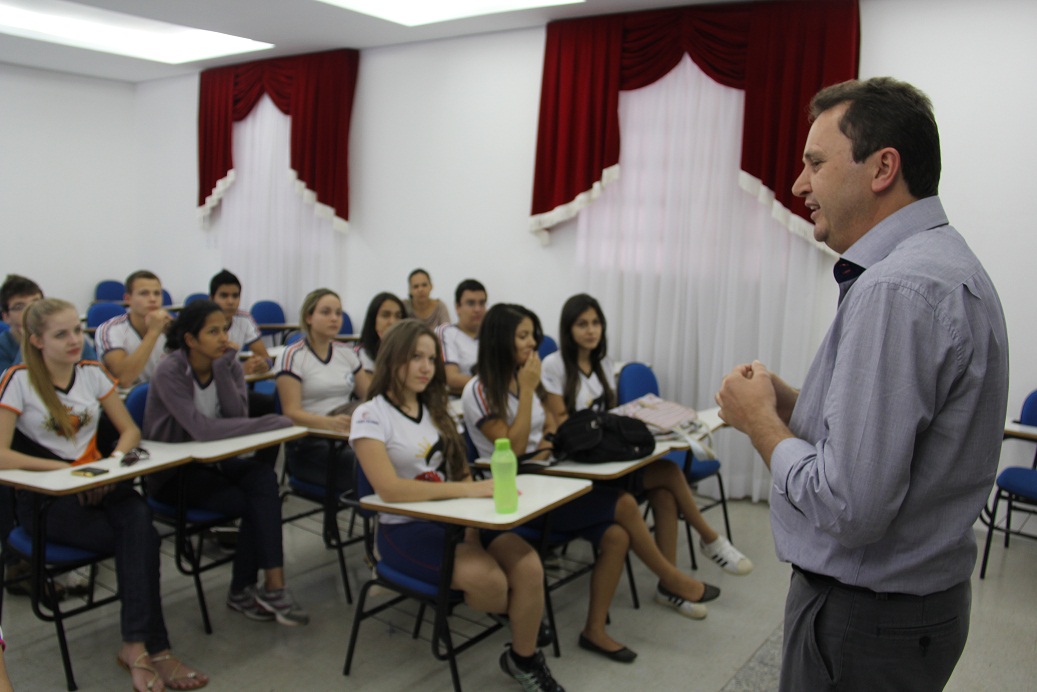 O prefeito Ademir Gaspar, esteve nesta terça-feira (13) em reunião com alunos do Ensino Médio da Escola Albert Einsten para explanar assuntos como carreira política e ações em andamento e já realizadas no município.