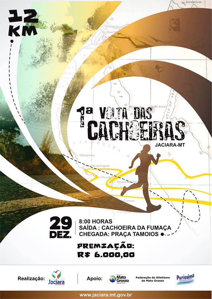 A Prefeitura de Jaciara em parceria com o Governo do Estado realiza no próximo dia 29 de dezembro a 1° Volta das Cachoeiras. Um circuito de 12 km com a premiação de 6 mil reais divida entre os primeiros colocados. Além dessa premiação, o primeiro colocado residente em Jaciara, leva com você o prêmio de 500 reais.