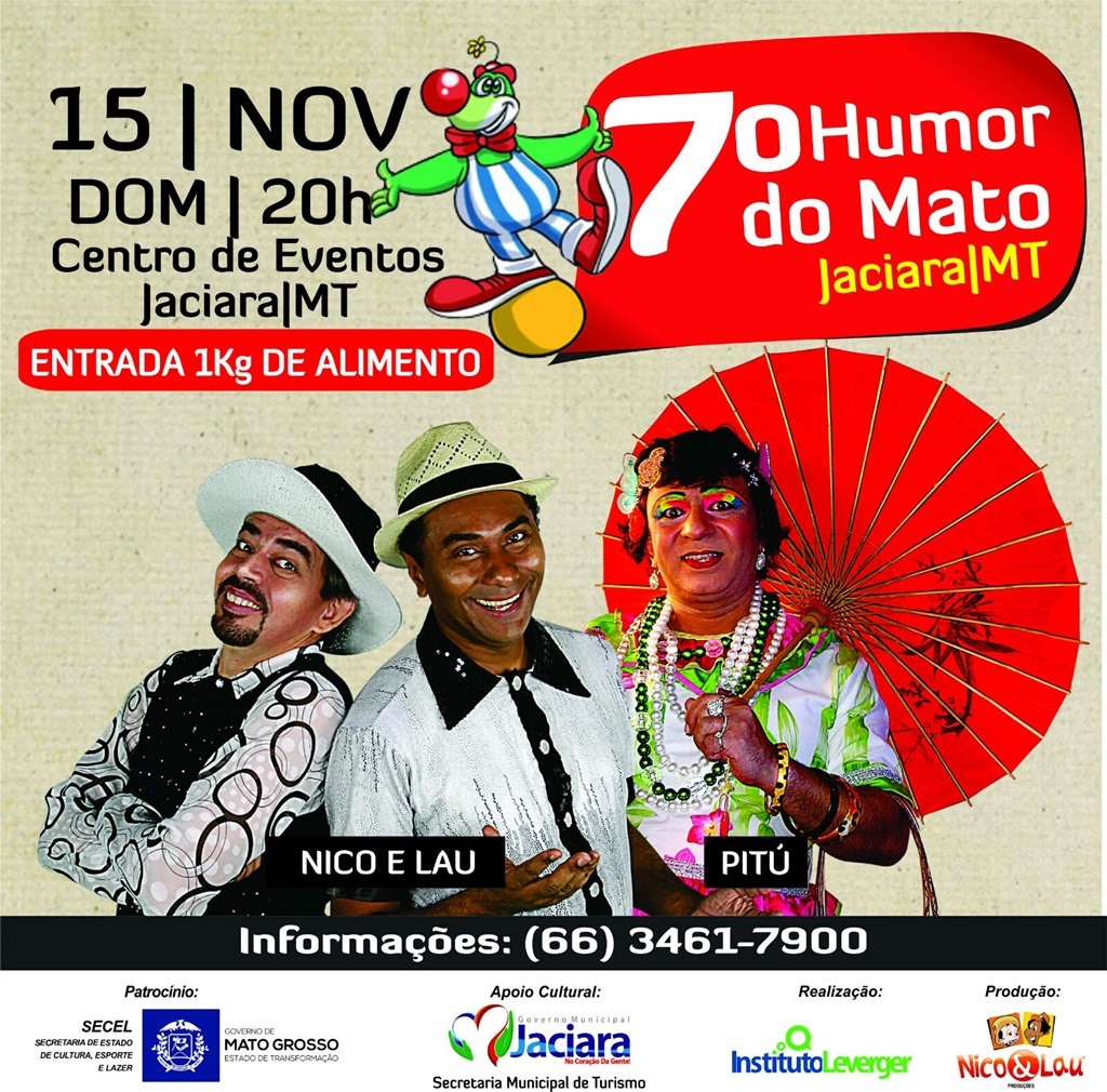 Em 2015 na primeira fase do 7º HUMOR DO MATO, já passaram pelo Festival Os Fulanos, Matheus Ceará (Praça é Nossa), Nelson Freitas (Zorra Total), Nico e Lau, Totó Bodega, Almerinda, Creonice e Comadre Pitú, no mais novo espaço de Cuiabá, Teatro do Cerrado Zulmira Canavarros, seguindo agora para os municípios de Santo Antônio de Leverger, Jaciara e Cáceres, uma forma de descentralizar e democratizar o maior Festival de Humor do Centro Oeste.