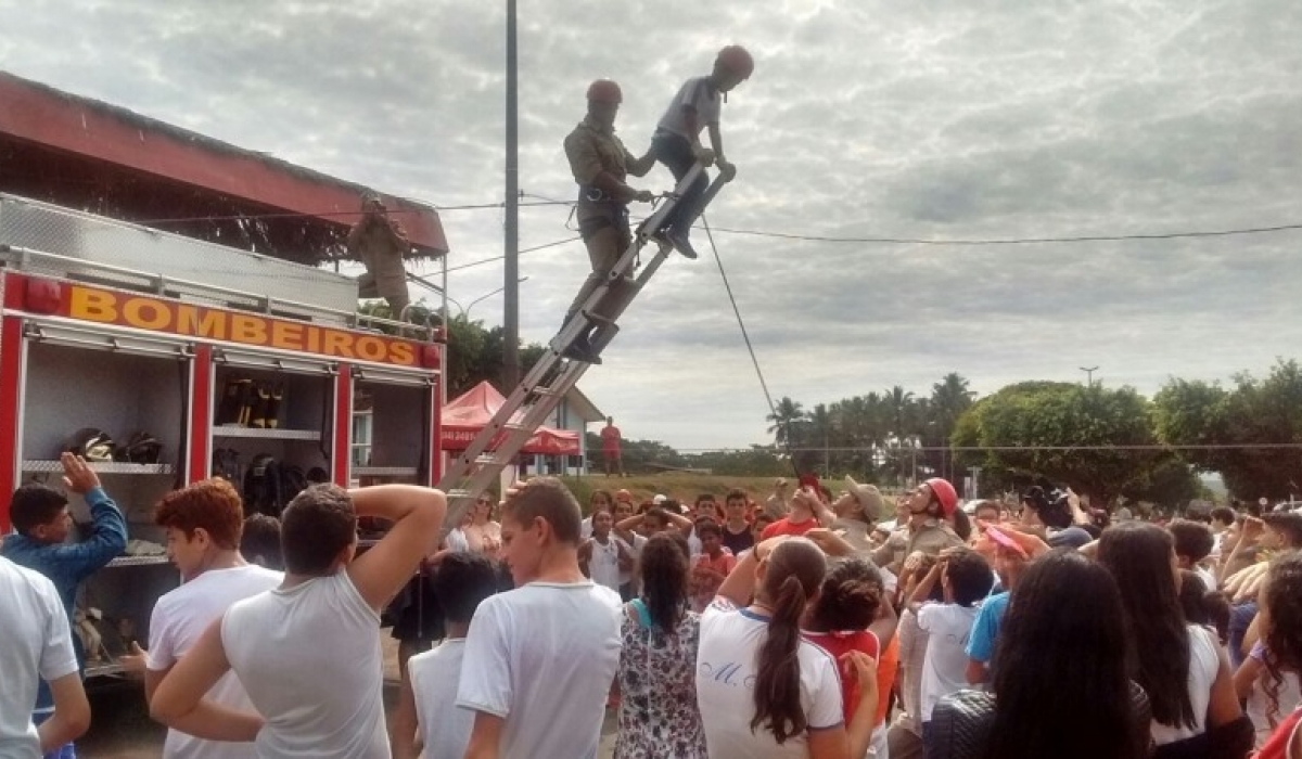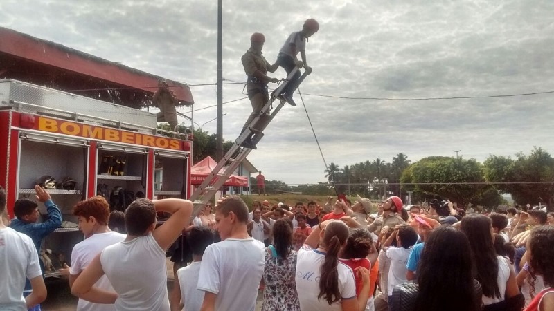 Durante a ação, os bombeiros mostraram exercícios diversos que fazem parte da rotina do corpo de bombeiros como combate ao incêndio, resgate de pessoas, além de ensino sobre o valor da disciplina.