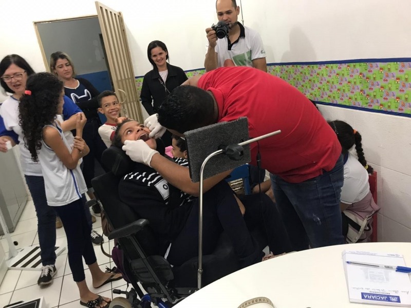 Segundo informações do NASF cerca de 25 crianças portadoras de necessidades especiais fizeram exames clínicos e receberam instruções sobre higiêne bucal com o coordenador de Odontologia, Igor Masson e a auxiliar de Saúde Bucal, Ediatriz Schuster.