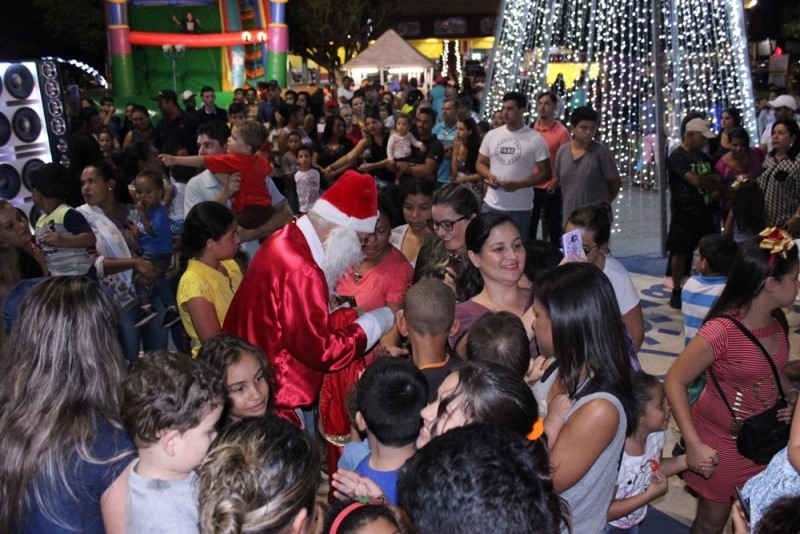 Na Praça, iluminada e cheia de brinquedos, muitas pessoas aguardavam ansiosas pela chegada do “bom velhinho”, que distribuiu muitos doces e abraços. O prefeito e a primeira-dama subiram no coreto e deixaram uma mensagem de esperança e amor para todos.