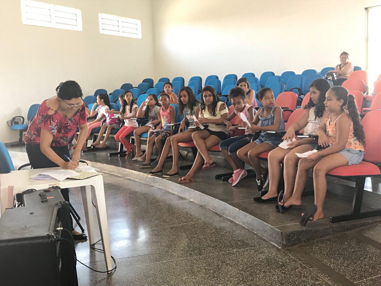 Cerca de 37 crianças e adolescentes, com idades entre 7 e 17 anos, participaram da primeira aula no período matutino ministrada pela professora de canto, Sara Martins. “Fizemos dinâmicas para eles se conhecerem, dinâmica de ritmo e já começamos a ensaiar a primeira música, pois já temos uma apresentação prevista para o mês de julho”, informou a professora.