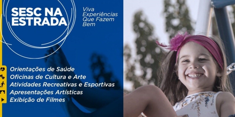 O projeto “Sesc na Estrada” chega em Jaciara no dia 27 de março, na Praça JK. O evento reunirá várias ações e atividades em um só local, de maneira totalmente gratuita à população.
