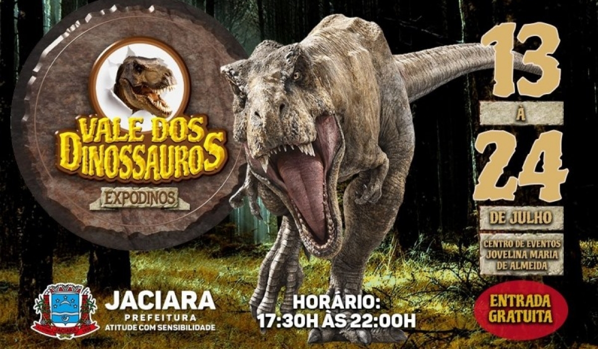 Crianças, jovens e adultos de Jaciara terão pela primeira vez, a oportunidade para se divertir e obter conhecimento histórico sobre o mundo dos dinossauros neste mês de julho. É que a Prefeitura de Jaciara em parceria com o Instituto Mato-grossense de Desenvolvimento Humano com sede em Cuiabá-MT, realizará a exposição “Vale dos Dinoussauros”.