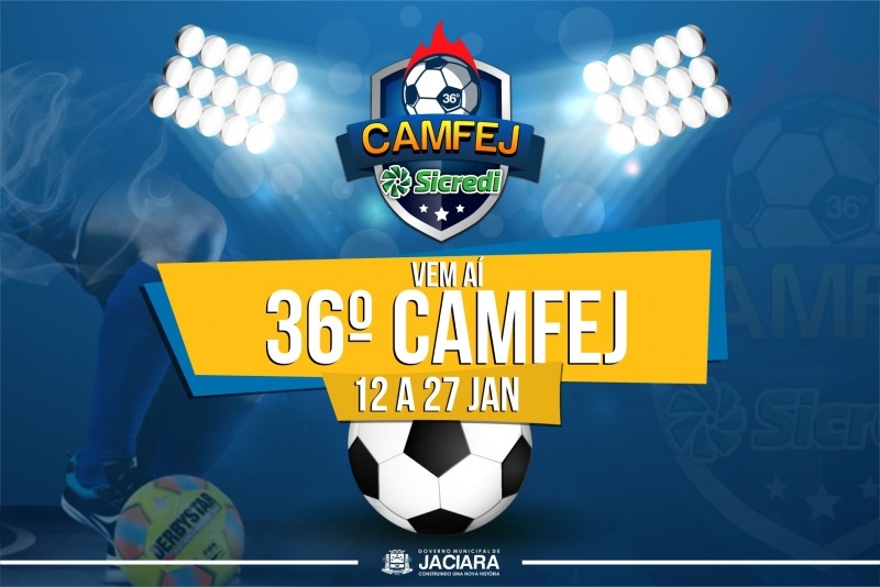 Vem aí a 36ª edição do Camfej (Campeonato de Férias de Jaciara). A abertura será no dia 12 de janeiro, sexta-feira, às 20h30, no Ginásio Municipal.